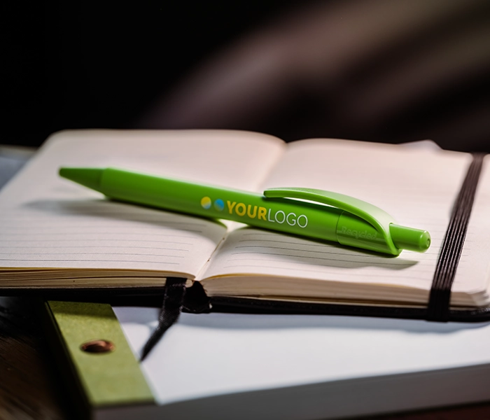 Schreibgeräte mit diesem Logo sind aus Recycling-Kunststoff gefertigt. Die Verwendung von Recyclaten vermeidet Abfall, reduziert Emissionen und schont endliche Ressourcen.