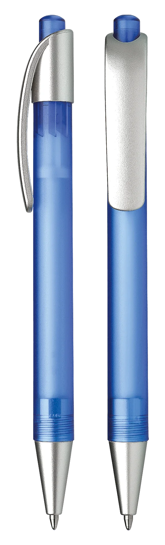 Druckkugelschreiber aus transparentem oder opakem Kunststoff.