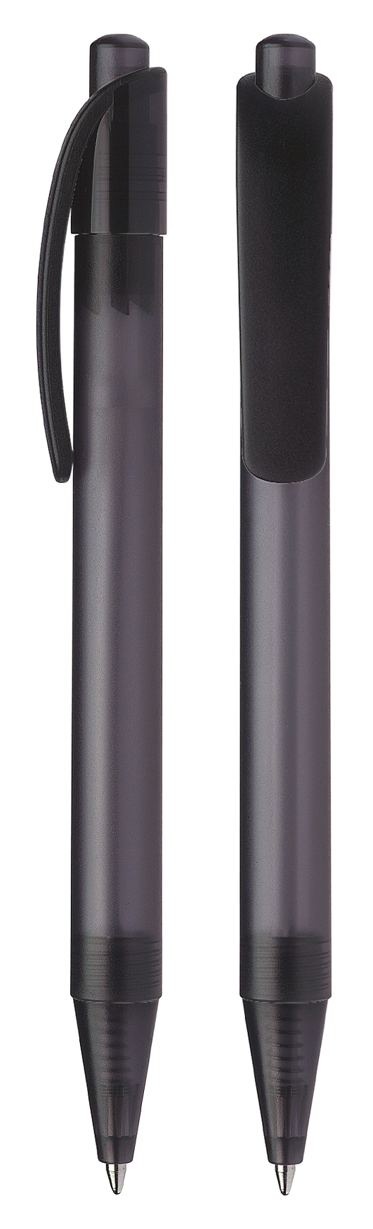 Druckkugelschreiber aus transparentem oder opakem Kunststoff.