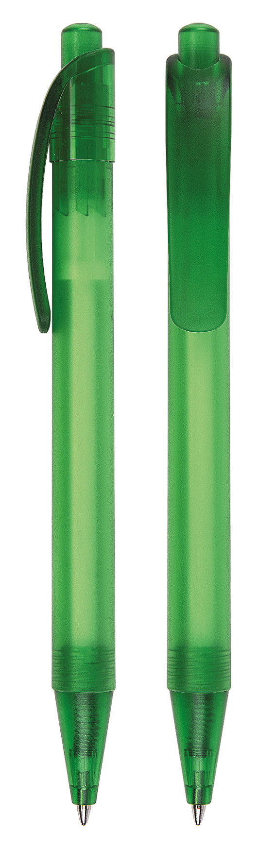 Druckkugelschreiber aus transparentem oder opakem Kunststoff.