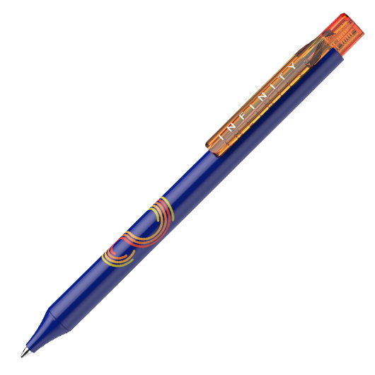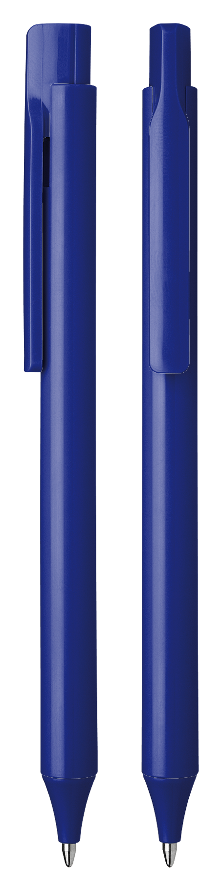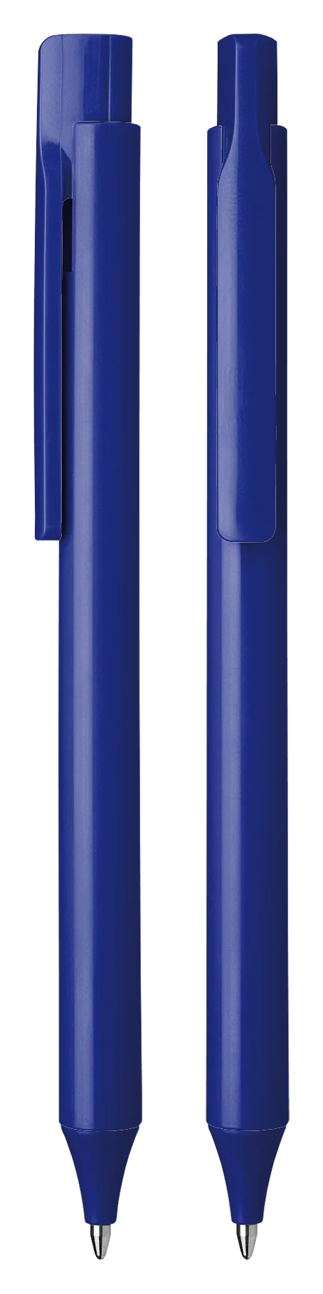 Druckkugelschreiber aus transparentem oder opakem Kunststoff.