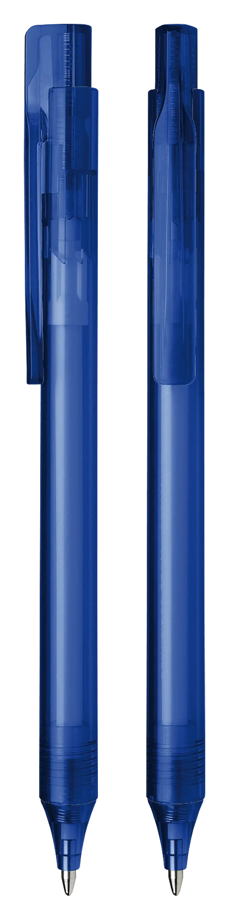 Druckkugelschreiber aus transparentem oder opakem Kunststoff.