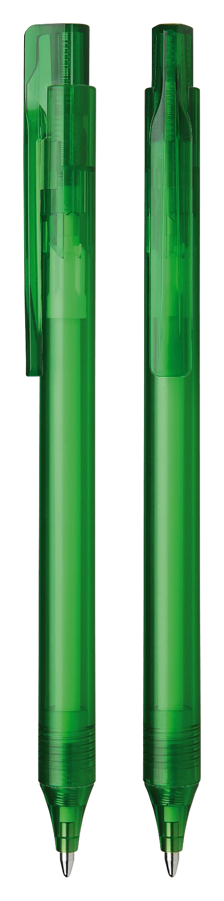 Druckkugelschreiber aus transparentem oder opakem Kunststoff.