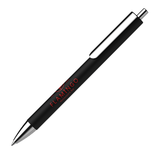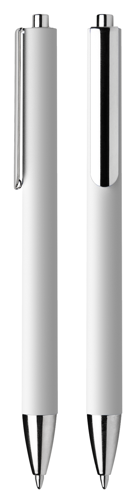 Oberteil mit mattierter Soft Touch-Lackierung. Gehäusespitze, Clip und Druckknopf aus Metall.