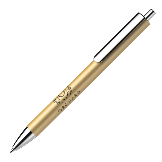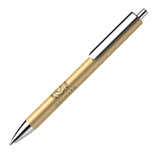 Druckkugelschreiber aus Kunststoff mit lackierter Oberfläche.