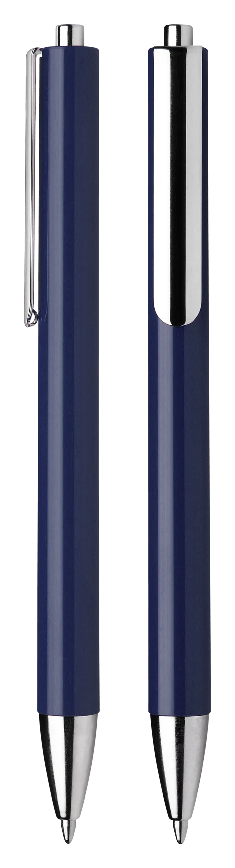 Druckkugelschreiber aus transparentem oder opakem Kunststoff.