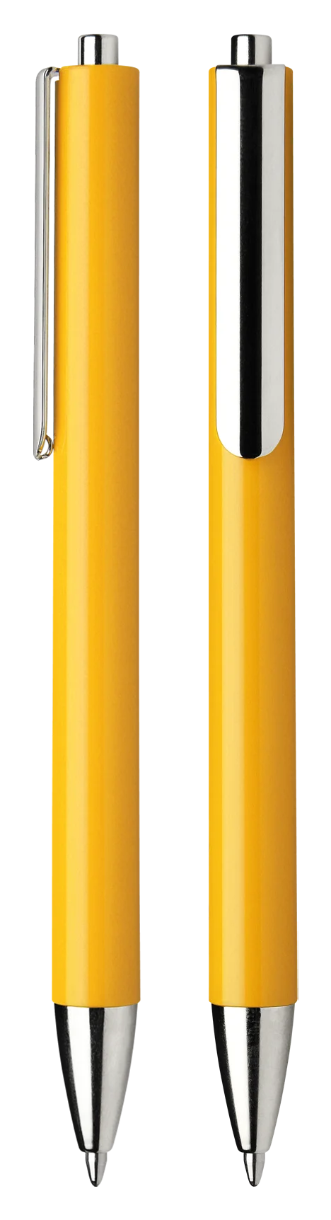Druckkugelschreiber aus transparentem oder opakem Kunststoff.