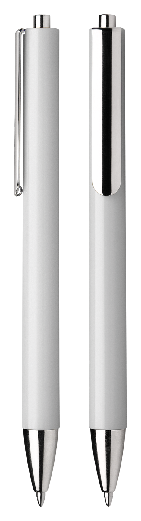 Druckkugelschreiber aus transparentem oder opakem Kunststoff.