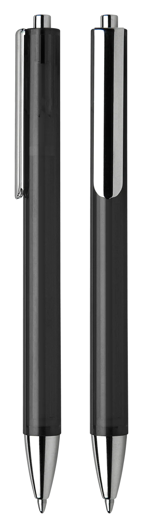 Druckkugelschreiber aus transparentem oder opakem Kunststoff.