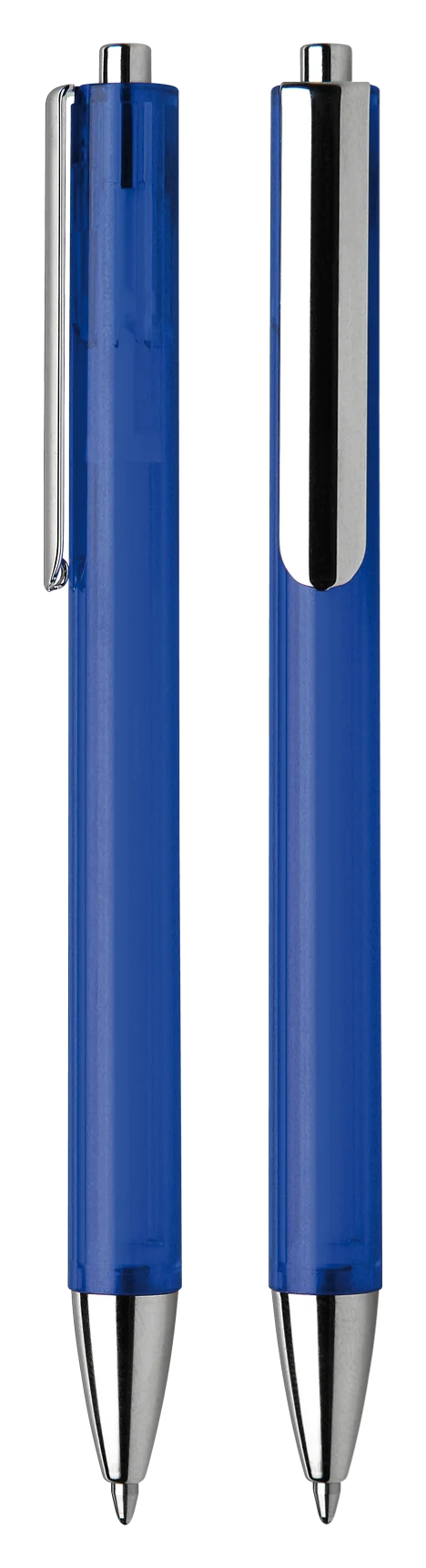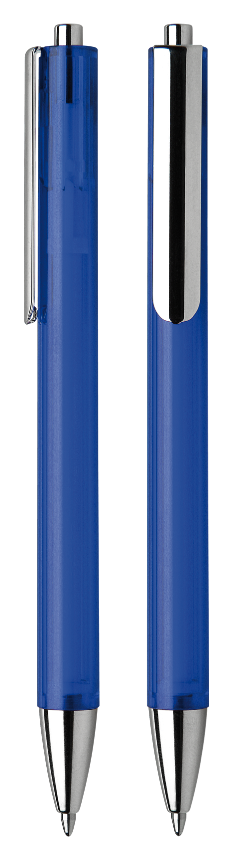 Druckkugelschreiber aus transparentem oder opakem Kunststoff.