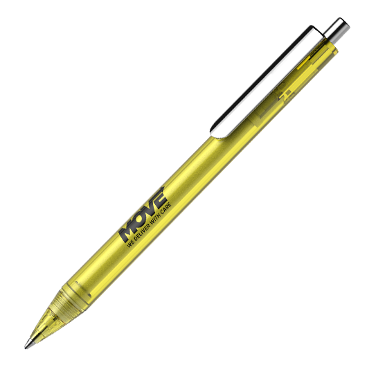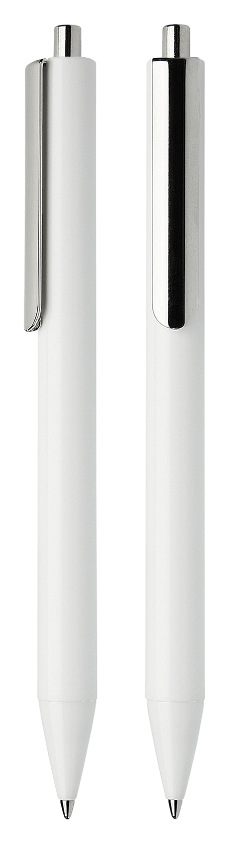 Druckkugelschreiber aus transparentem oder opakem Kunststoff.