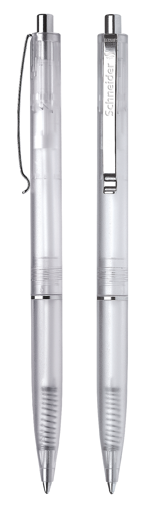 Gefrostete Oberfläche. Clip, Zierring und Druckknopf aus Metall.
