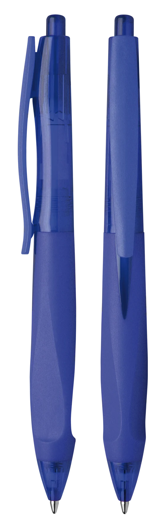 Druckkugelschreiber aus transparentem oder opakem Kunststoff mit glänzender Oberfläche.