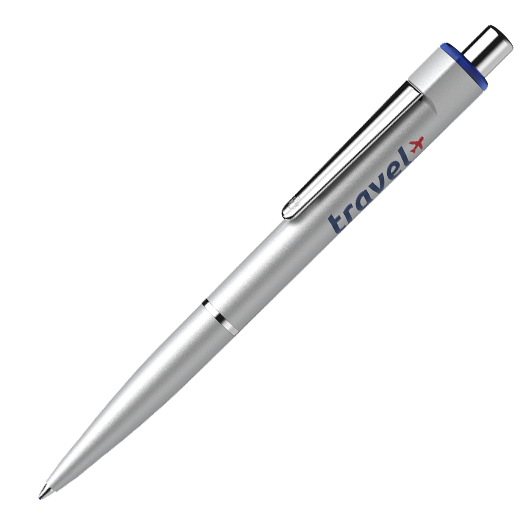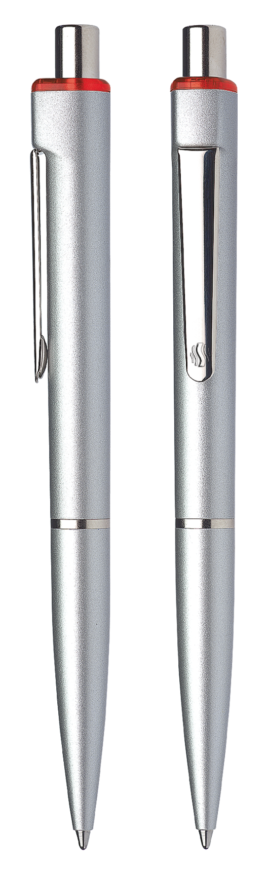 Druckkugelschreiber aus Kunststoff mit hochwertiger glänzender Silberlackierung.