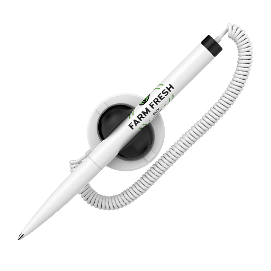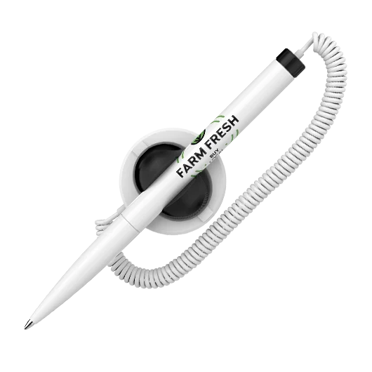 Kugelschreiber aus opakem Kunststoff mit Teleschnur zur Befestigung an Kasse, Telefon, im Auto etc.