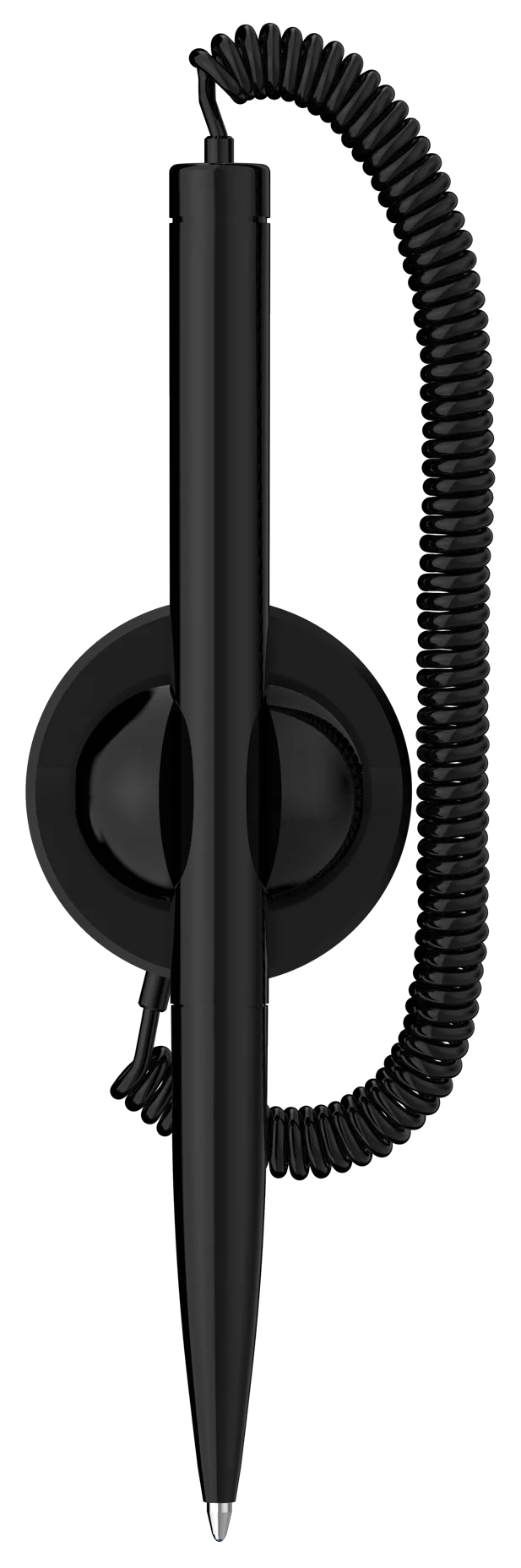 Kugelschreiber aus opakem Kunststoff mit Teleschnur zur Befestigung an Kasse, Telefon, im Auto etc.