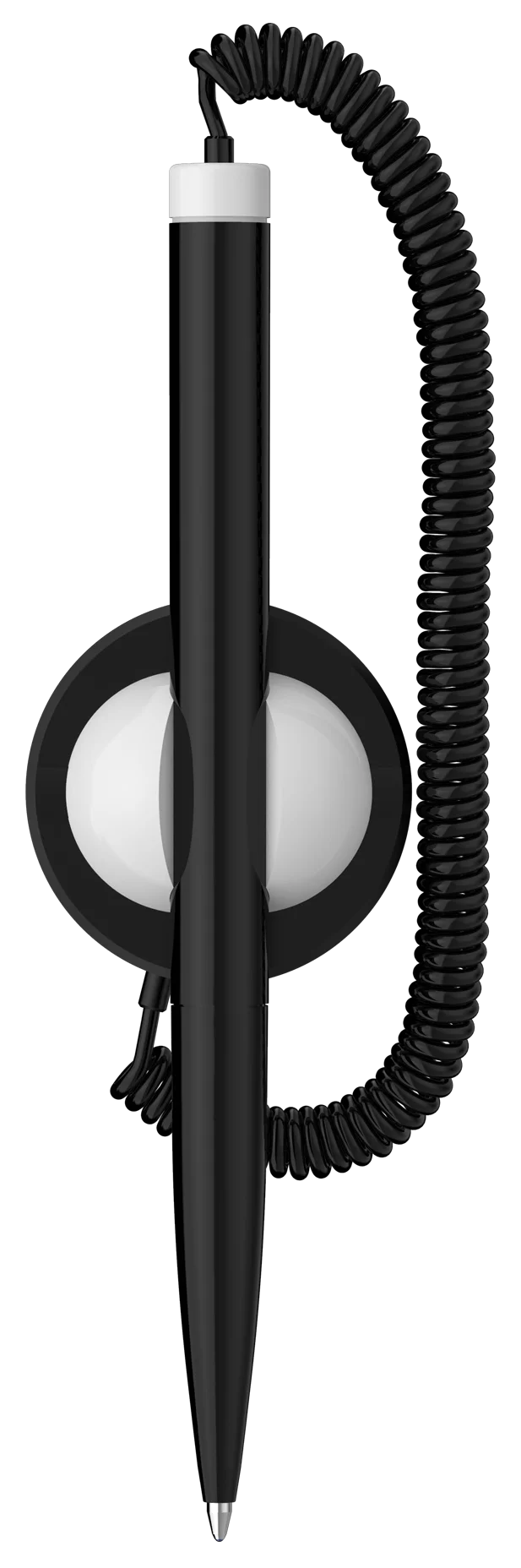 Kugelschreiber aus opakem Kunststoff mit Teleschnur zur Befestigung an Kasse, Telefon, im Auto etc.