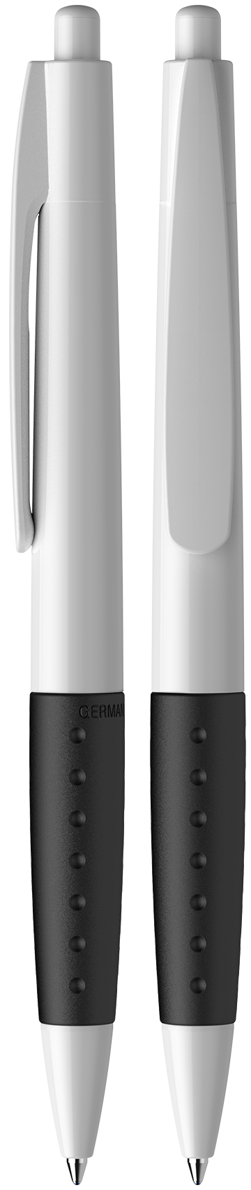 Druckkugelschreiber aus transparentem, opakem oder metallischem Kunststoff.