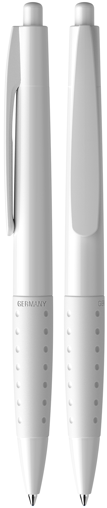 Druckkugelschreiber aus transparentem, opakem oder metallischem Kunststoff.
