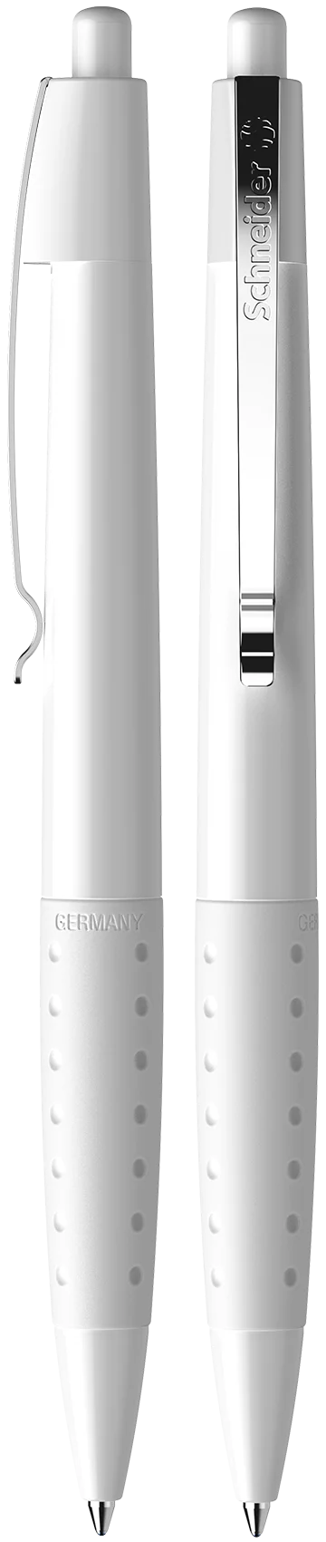 Druckkugelschreiber aus transparentem, opakem oder metallischem Kunststoff.