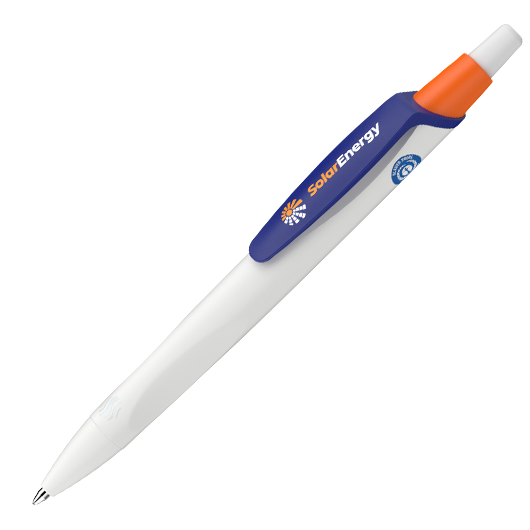 Erster Kugelschreiber, der mit dem weltweit bekanntesten Umweltzeichen "Blauer Engel" ausgezeichnet ist. Gehäuse aus 92 % recyceltem Kunststoff.