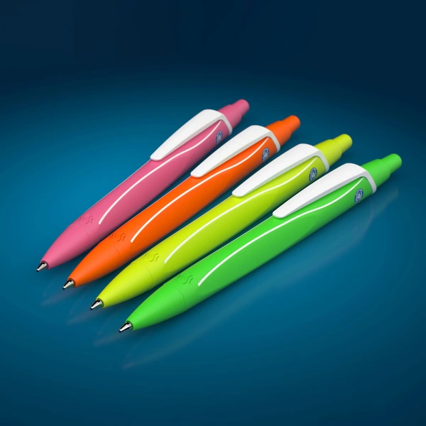 Dynamisches Design mit elegant matt schimmernder Oberfläche. Variante „Neon“ in leuchtenden Neon-Farben mit weißer Design-Linie und weißem Clip für einen frischen Look, der Ihre Marke unübersehbar macht.