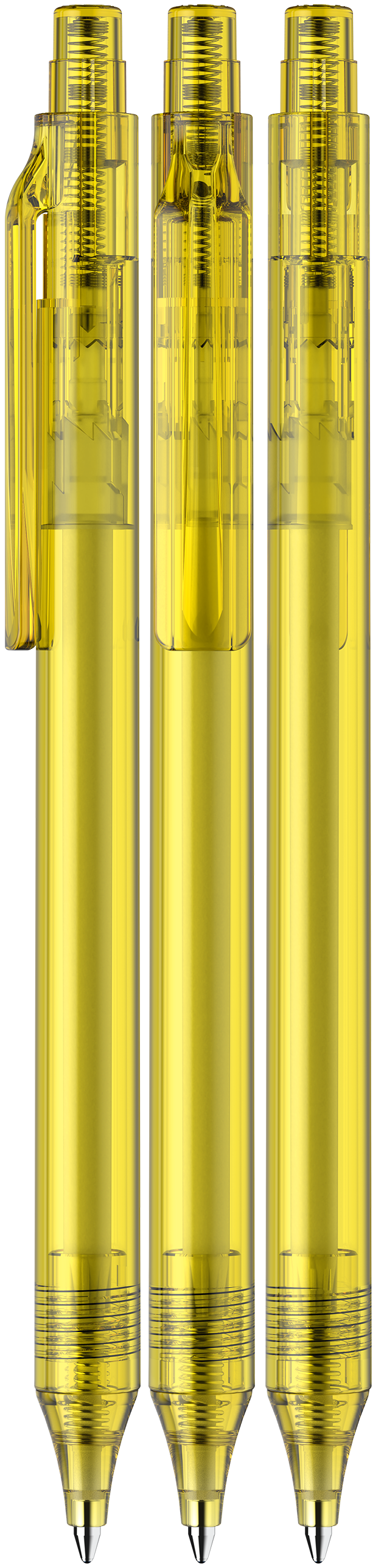 Druckkugelschreiber aus transparentem oder opakem Kunststoff.