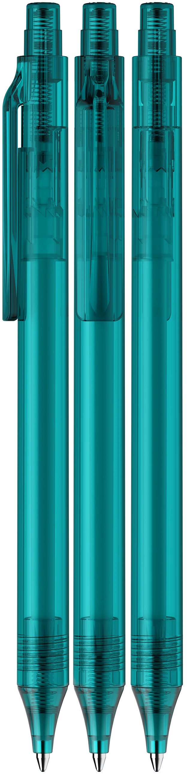 Druckkugelschreiber aus transparentem oder opakem Kunststoff.