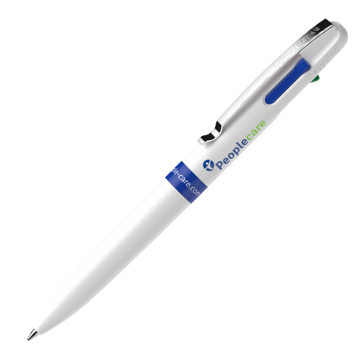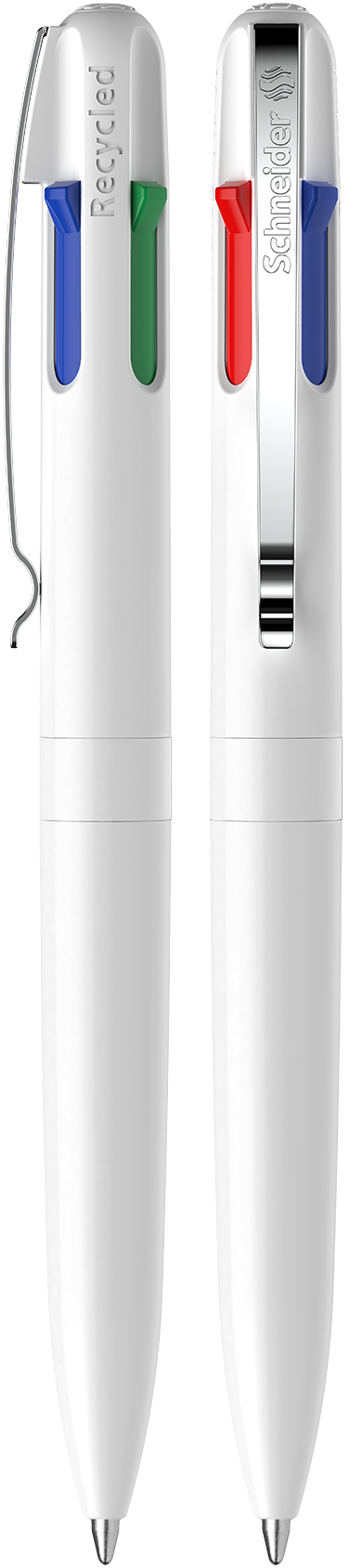 Vierfarb-Kugelschreiber mit den Schreibfarben schwarz, rot, blau und grün. Gehäuse aus 92 % recyceltem Kunststoff.