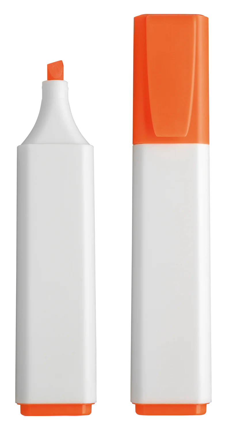 Textmarker aus opakem Kunststoff mit fein mattierter Oberfläche.