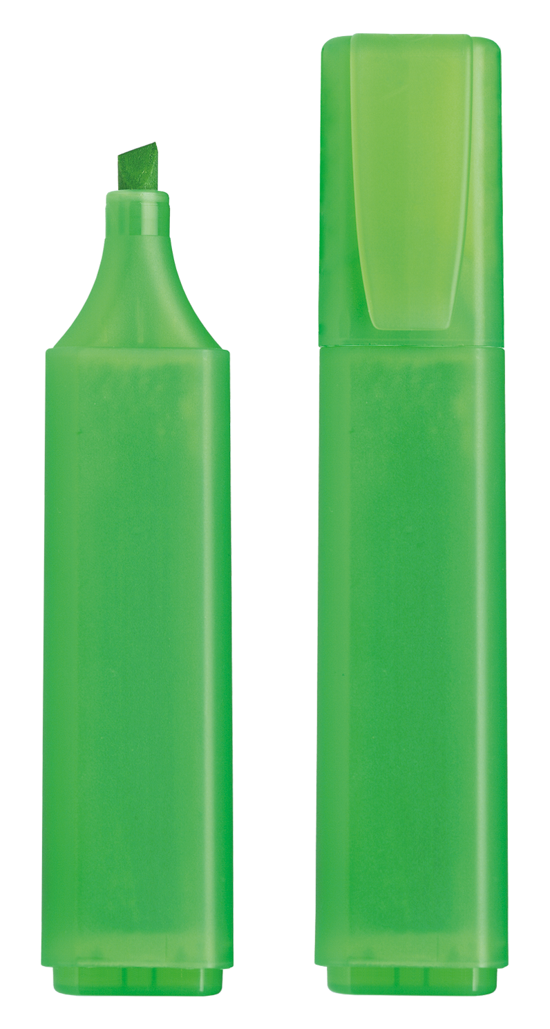 Textmarker aus transparentem Kunststoff mit fein mattierter Oberfläche.