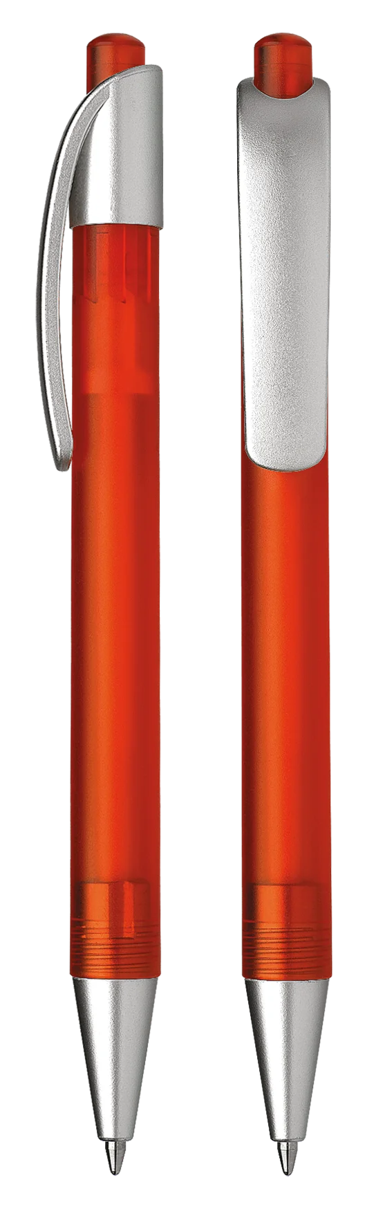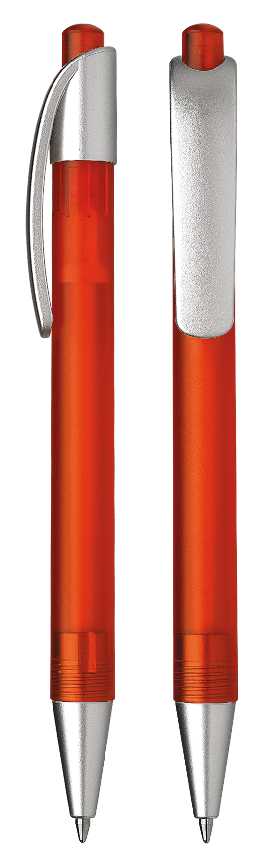 Ballpoint pen with push button made of transparent or opaque plastic.