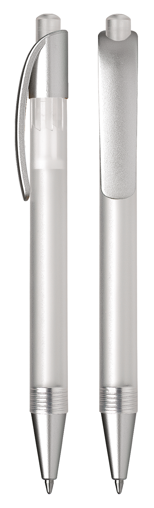 Ballpoint pen with push button made of transparent or opaque plastic.