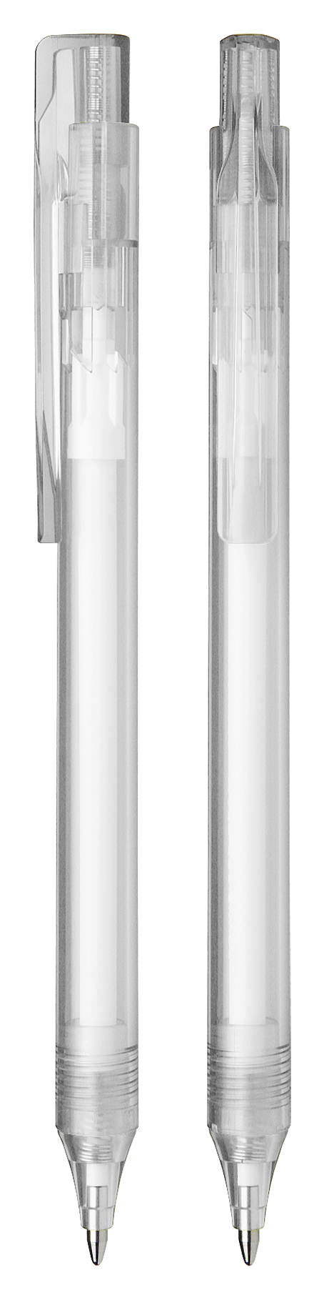 Ballpoint pen with push button made of transparent or opaque plastic.