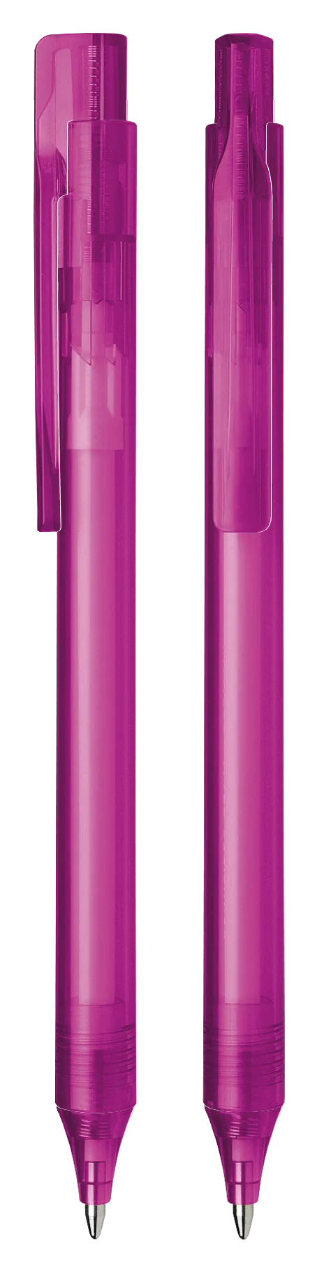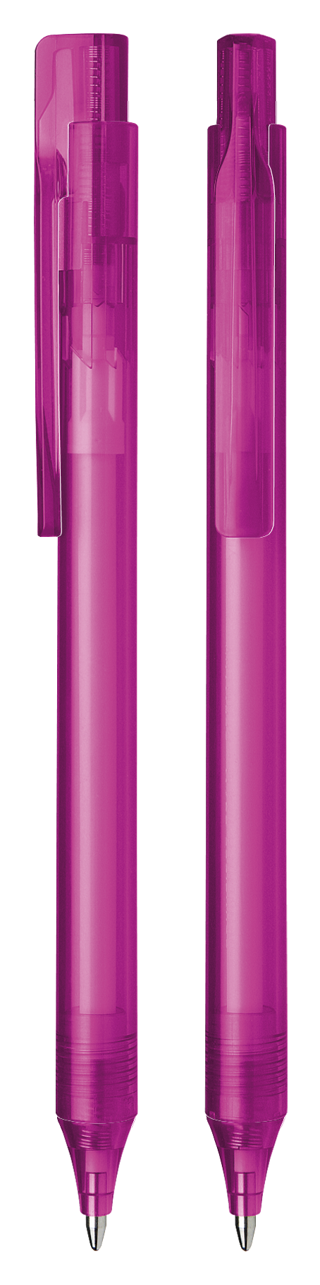 Ballpoint pen with push button made of transparent or opaque plastic.