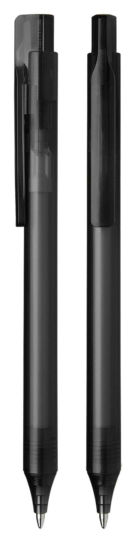 Ballpoint pen with push button made of transparent or opaque plastic.