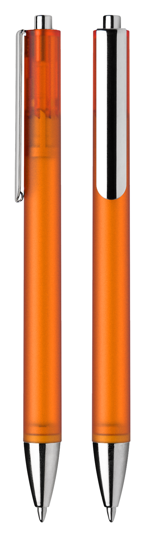 Upper part with matt soft touch lacquer. Metal pen body tip, clip and push button.