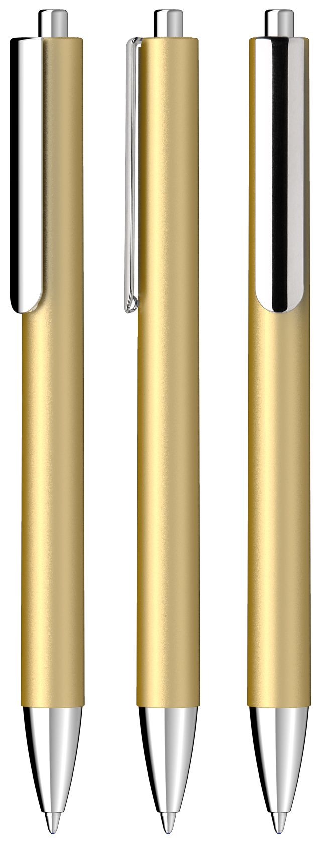 Ballpoint pens with push button made of plastic and lacquered surface.