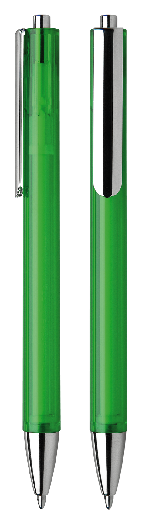 Ballpoint pen with push button made of transparent or opaque plastic.