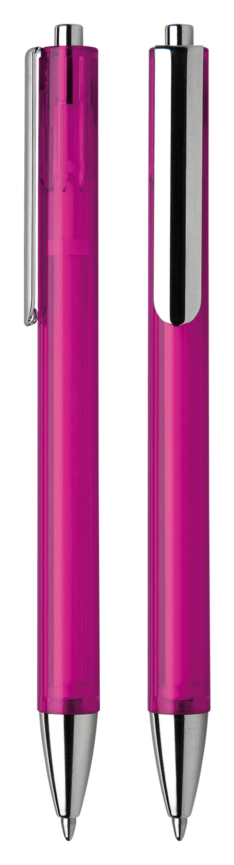 Ballpoint pen with push button made of transparent or opaque plastic.