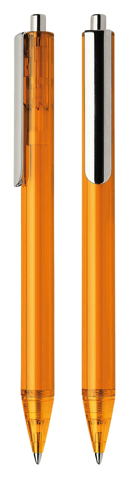 Ballpoint pen with push button made of transparent or opaque plastic.