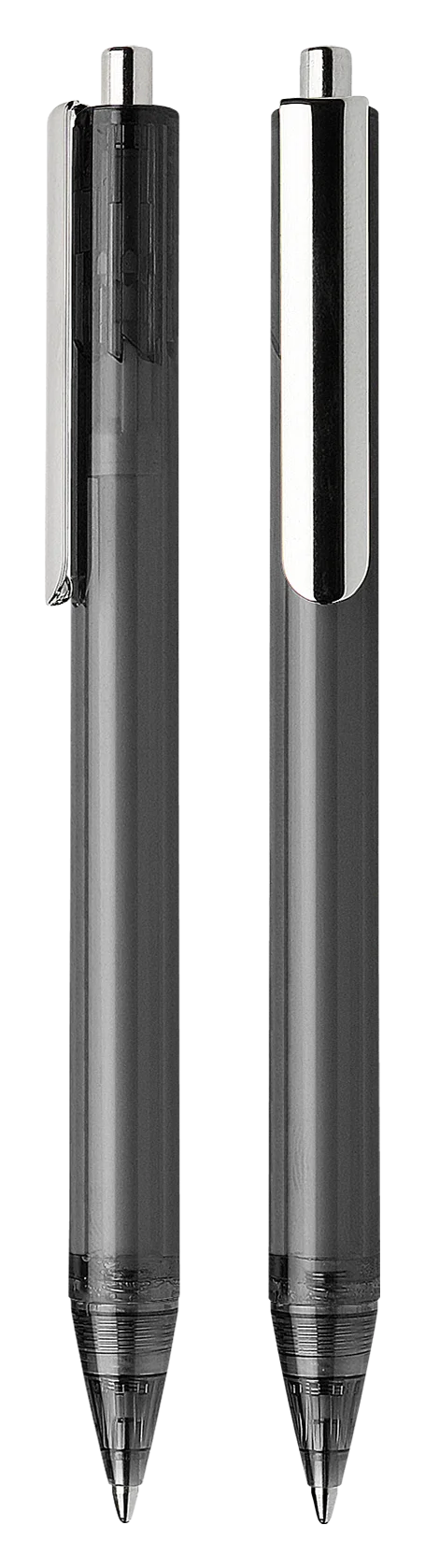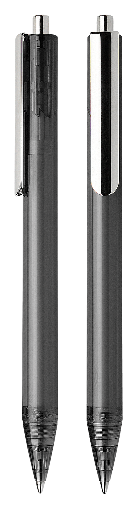 Ballpoint pen with push button made of transparent or opaque plastic.