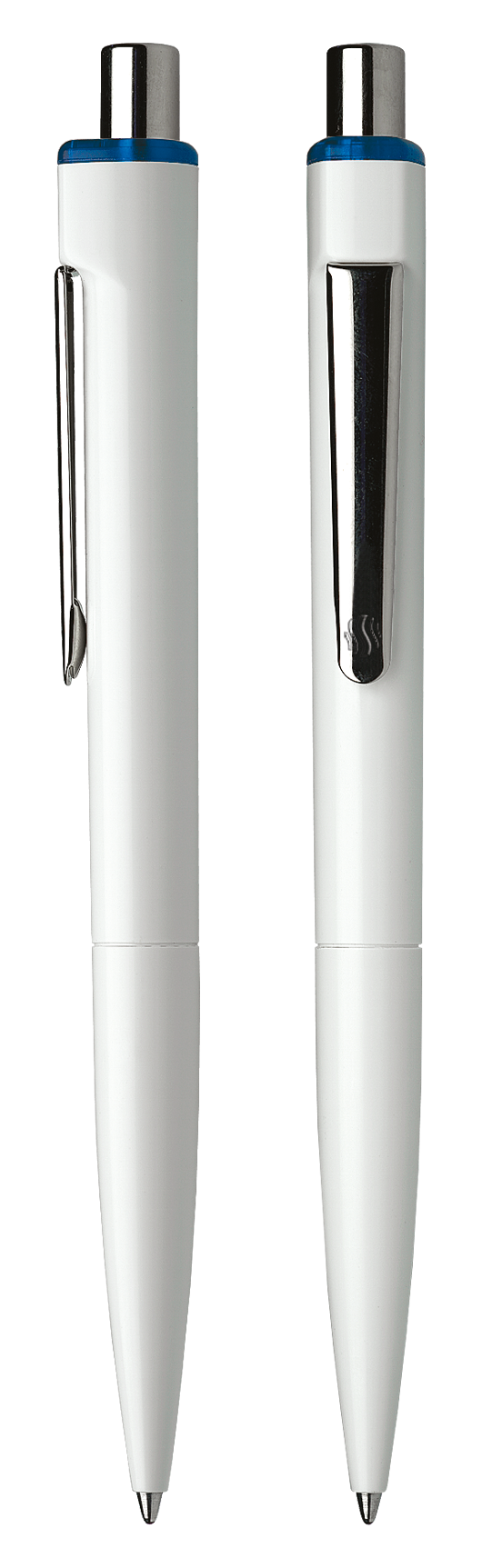 Barrel in white with transparent top extension in four different colours. Metal clip and push button.