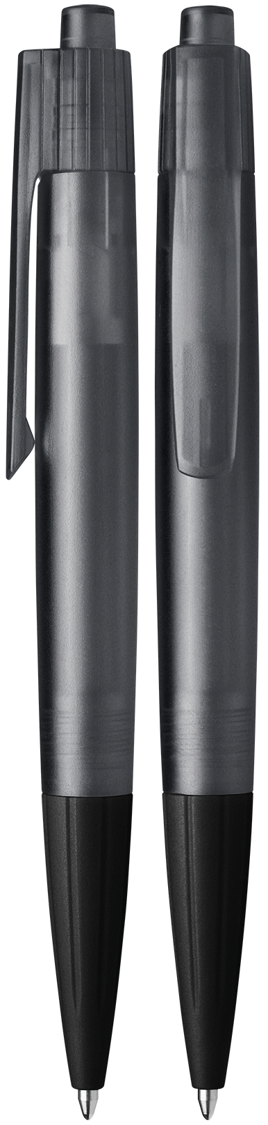 Ballpoint pen with push button made of transparent or opaque plastic in 22 fresh colours.