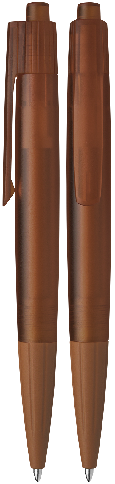 Ballpoint pen with push button made of transparent or opaque plastic in 22 fresh colours.