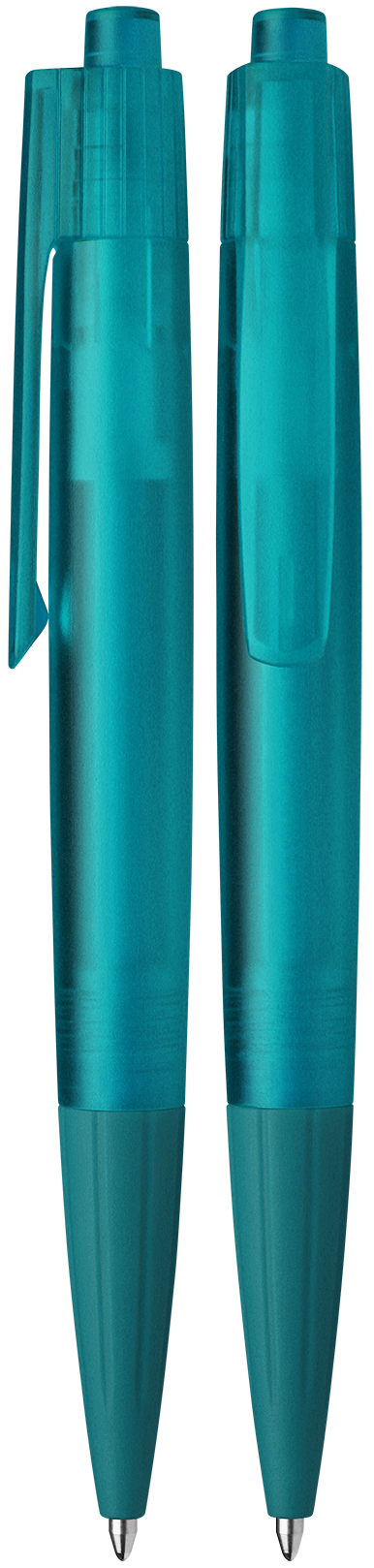 Ballpoint pen with push button made of transparent or opaque plastic in 22 fresh colours.