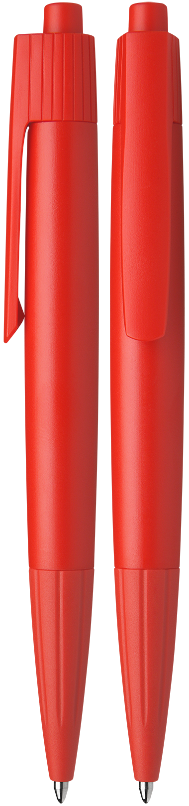 Ballpoint pen with push button made of transparent or opaque plastic in 22 fresh colours.
