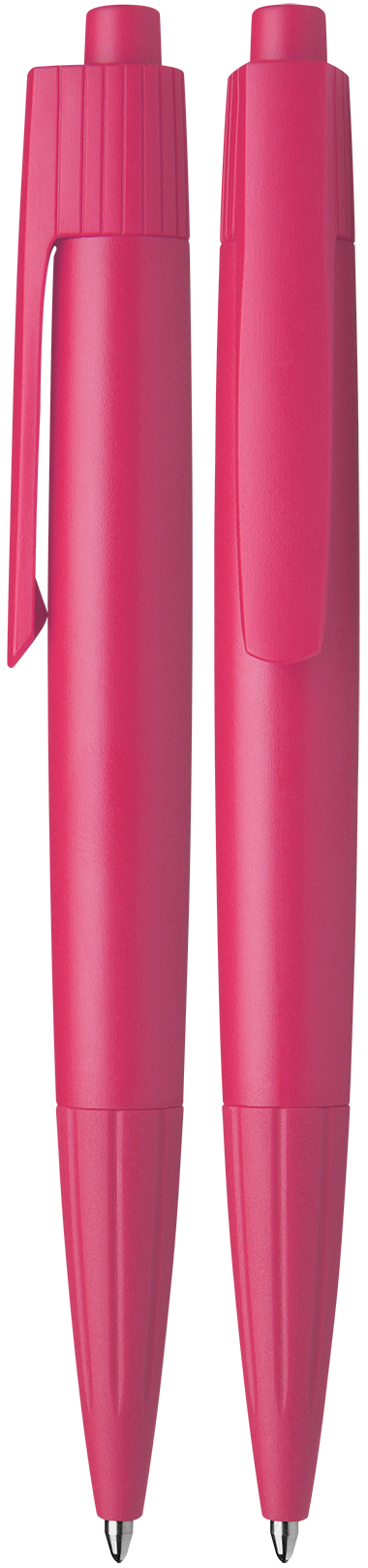 Ballpoint pen with push button made of transparent or opaque plastic in 22 fresh colours.