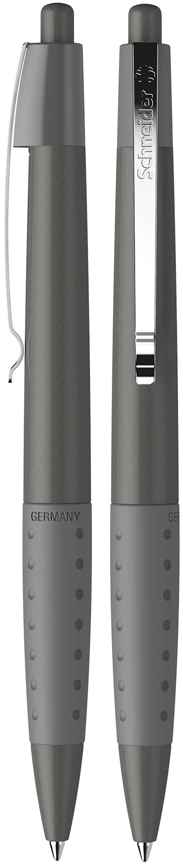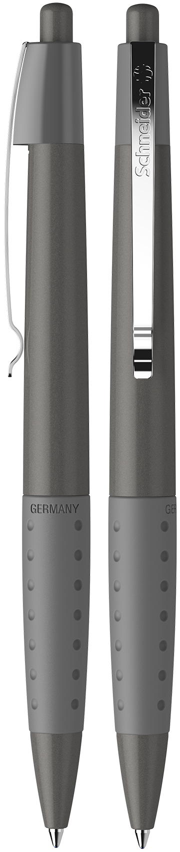 Ballpoint pen with push button made of transparent, opaque or metallic plastic.