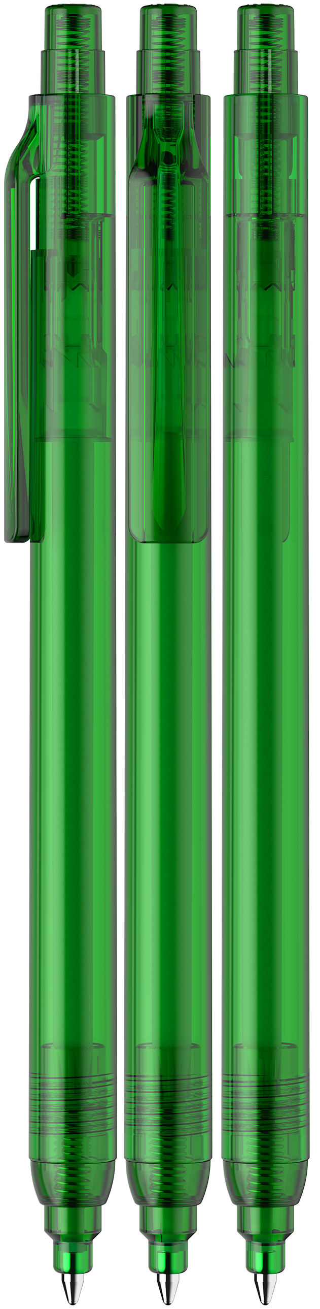 Retractable ballpoint pen available in transparent or opaque plastics.